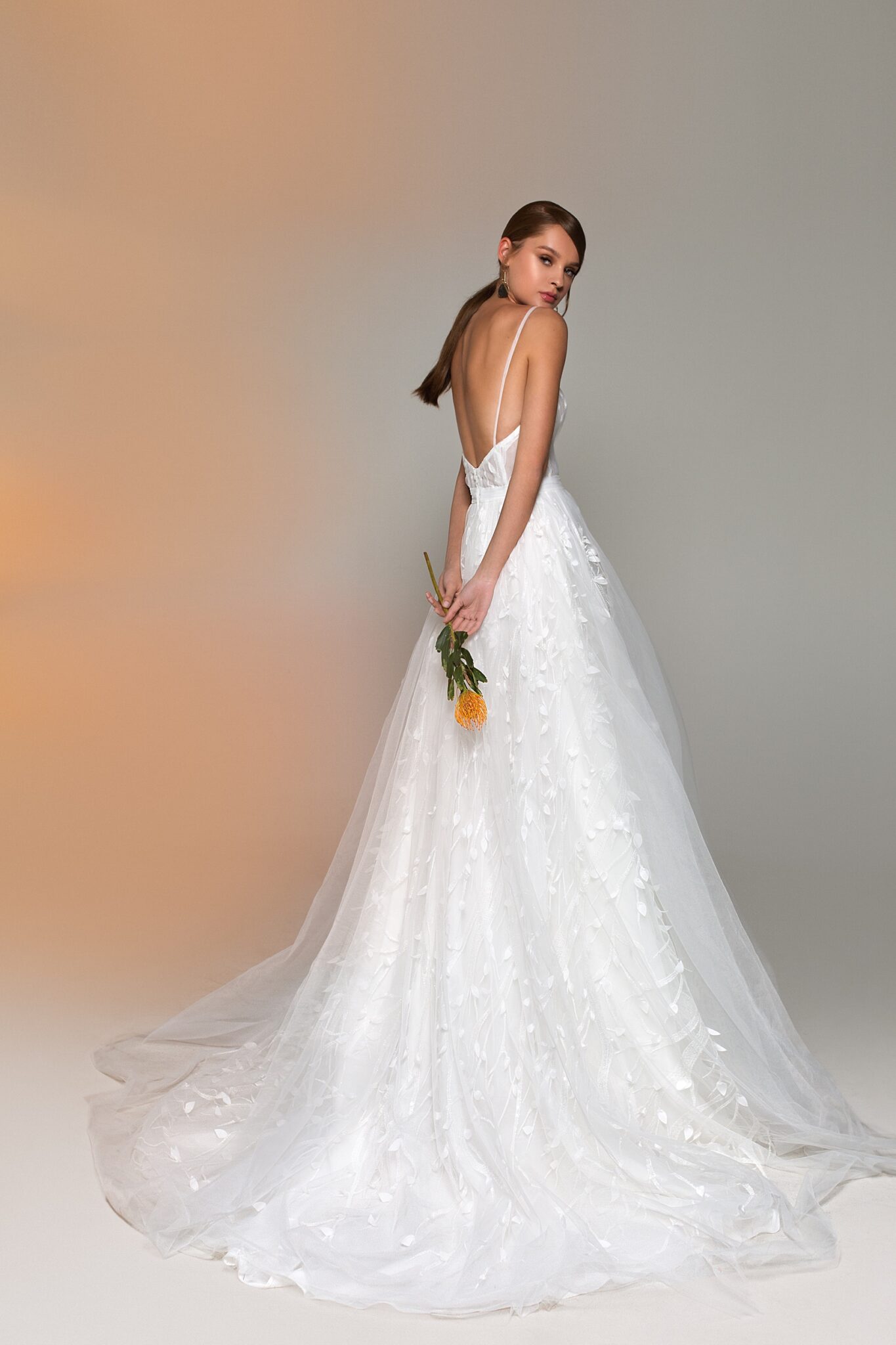 Low back wedding dress «Riley» with detachable bolero