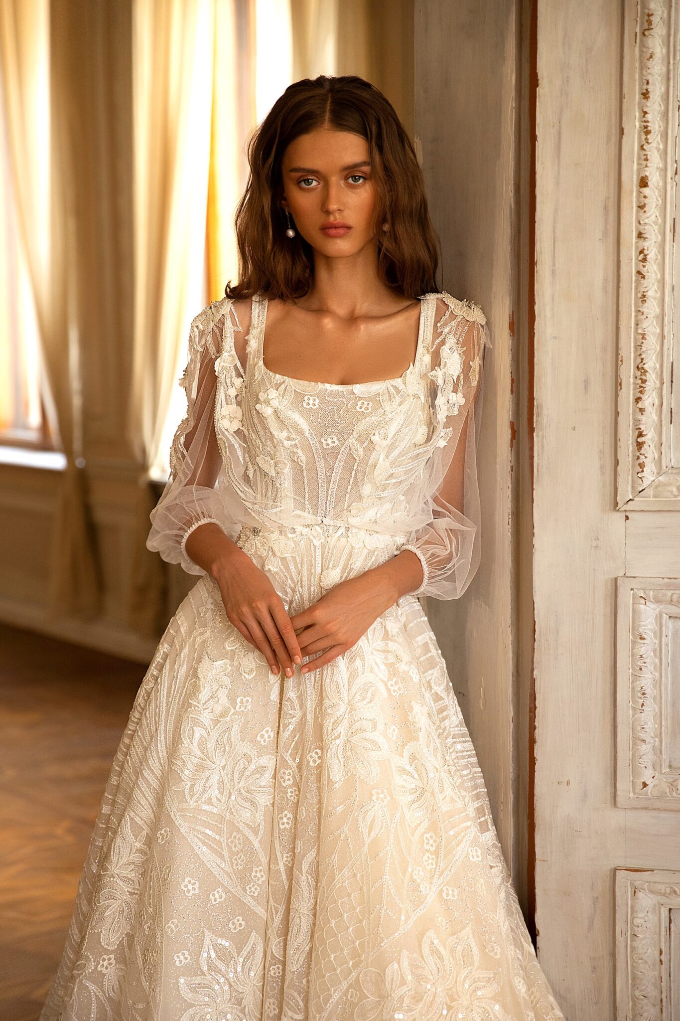 Straight wedding dress «Saida» with detachable bolero