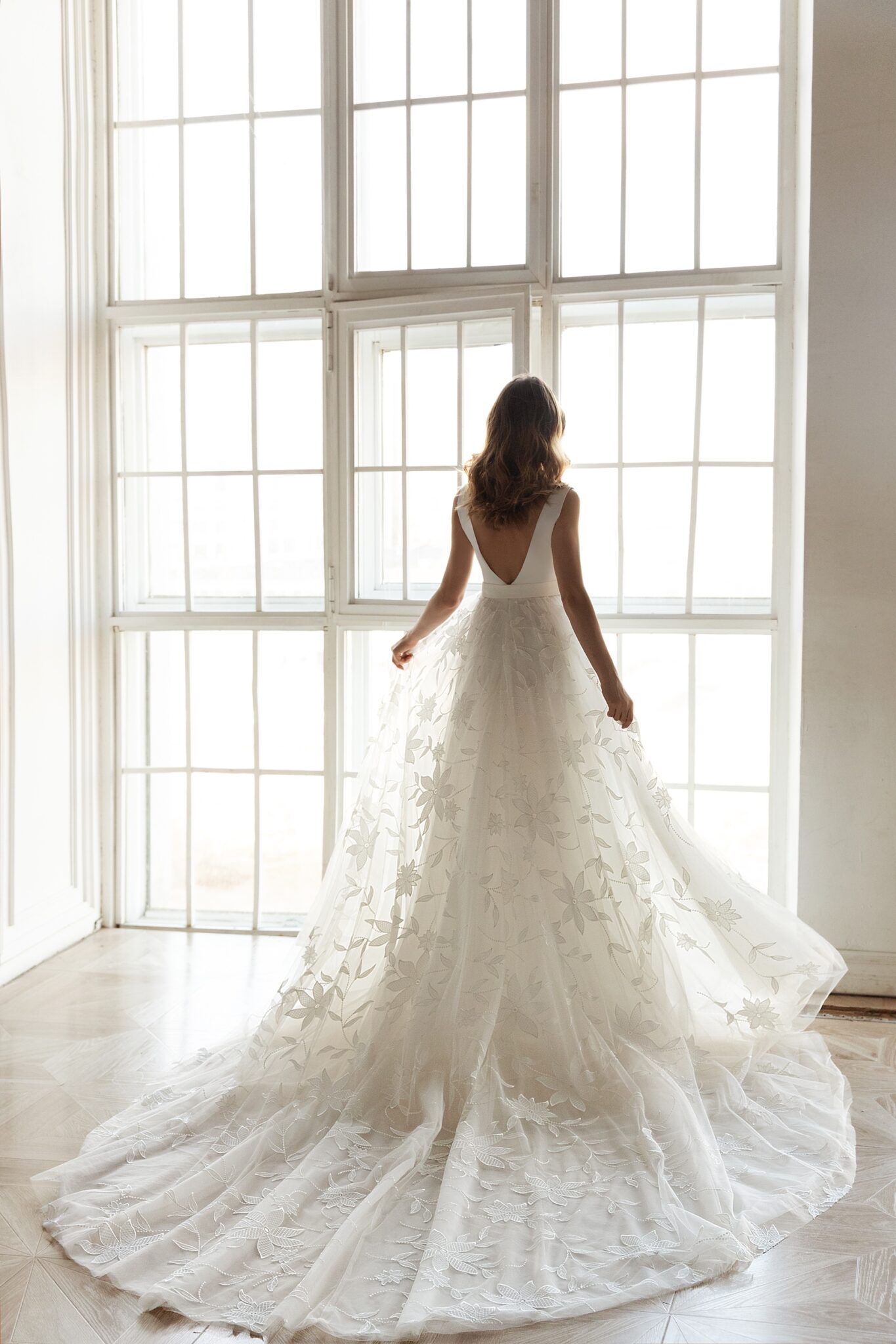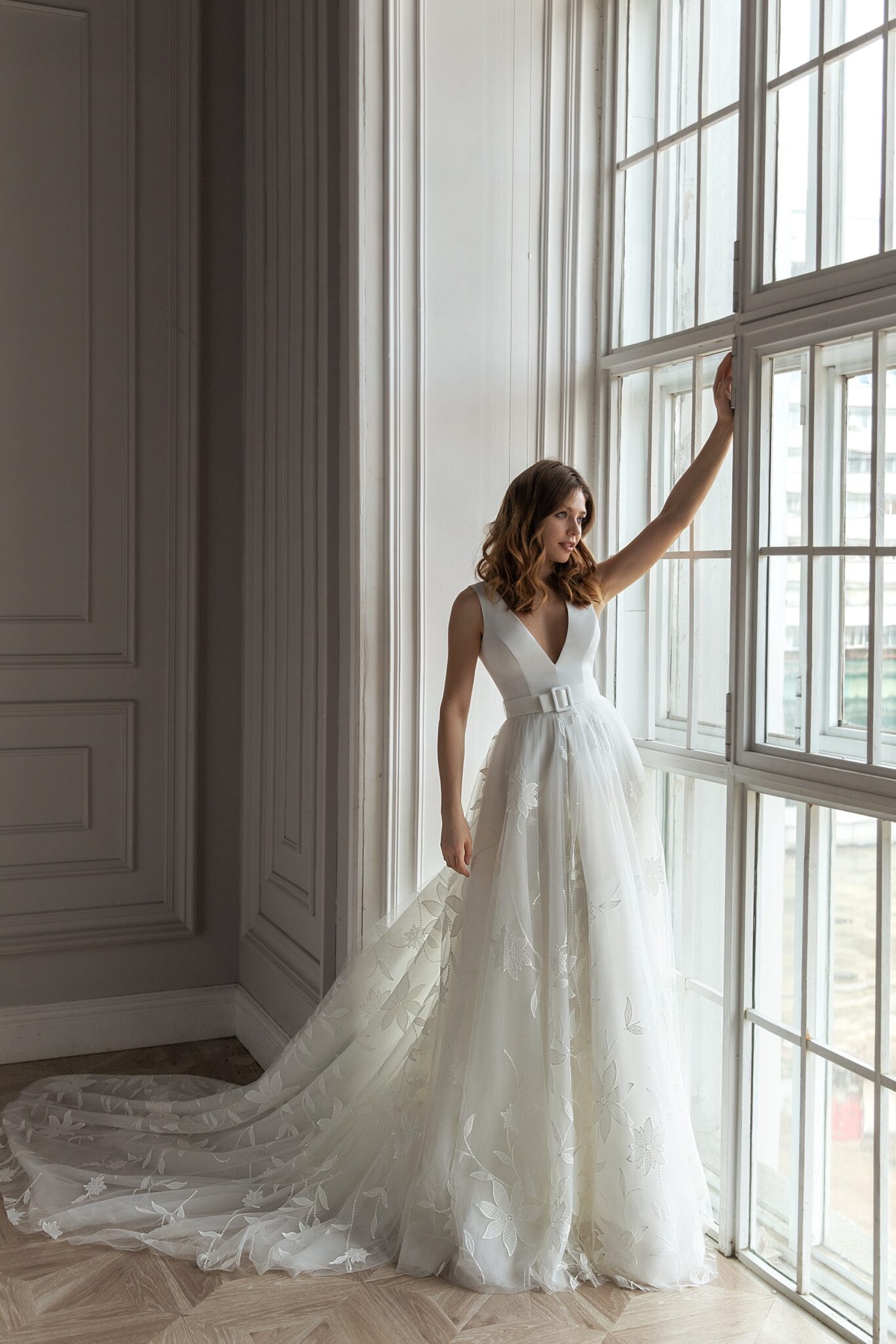 Low back wedding dress «Tendens» with belt