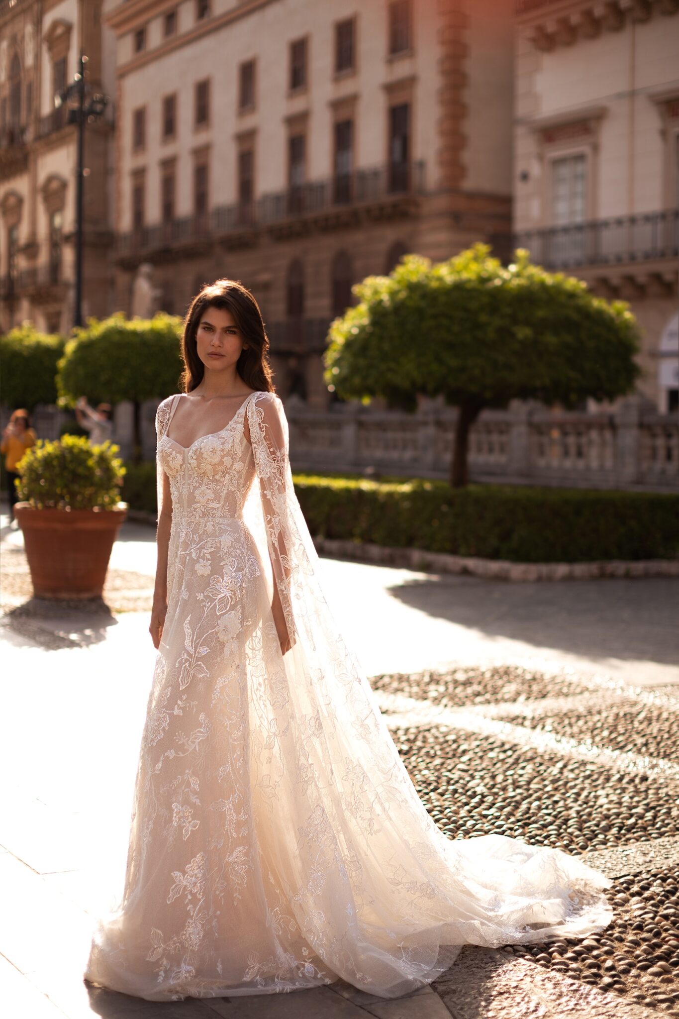 Straight wedding dress «Valentina» with detachable sleeves