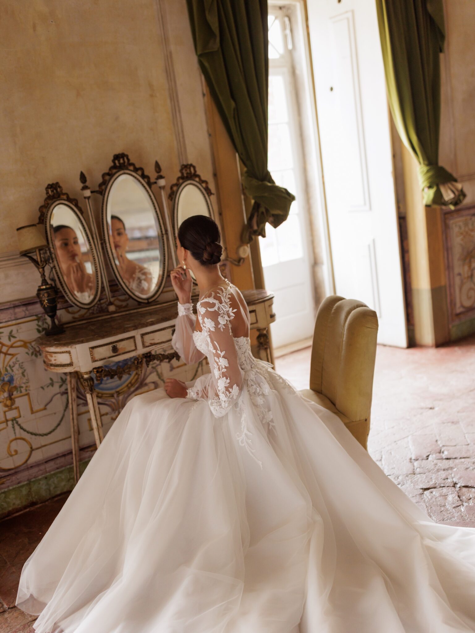 Bridal AlchemyAn elegant A-line silhouette gown featuring a romantic sweetheart neckline. The corset is beautifully adorned with lace, adding a touch of sophistication. The delicate long sleeves fasten with buttons at the cuffs and are also embellished with lace for an exquisite finish.