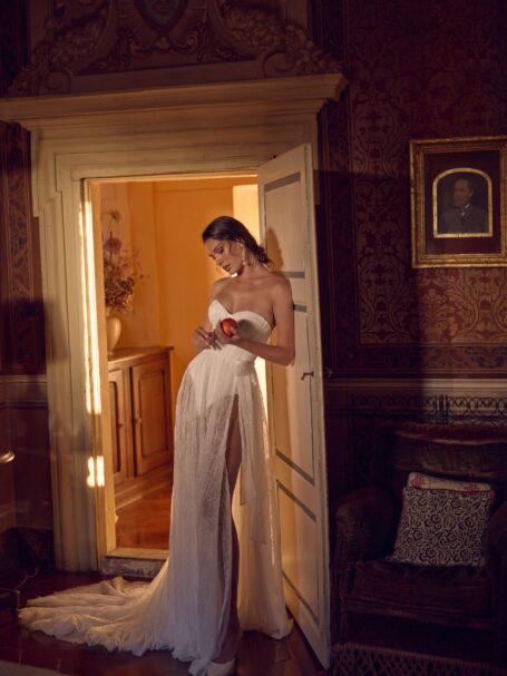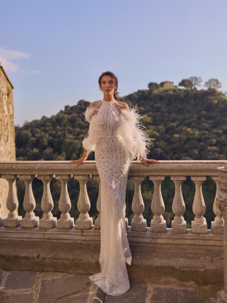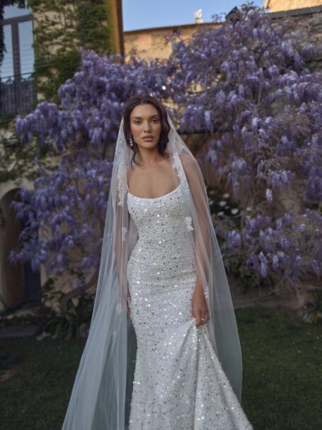 Are you ready to steal the show and grab everyone’s attention from the second you step on the aisle? Add just enough drama to your bridal look! Find the most exclusive and jaw-dropping wedding dresses with a chapel train in our collections. Shop with WONÁ to find engaging designs, brave fashion statements, luxurious quality, and magical service!